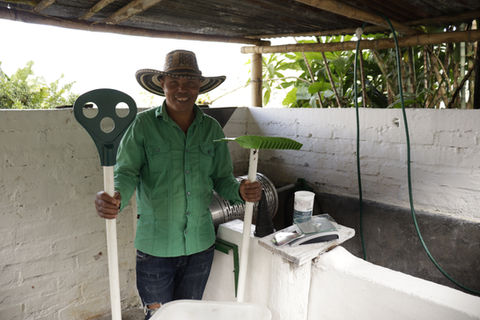 Utensilio para efectuar el lavado de café después del proceso de fermentación, retirando el mucílago del pergamino.